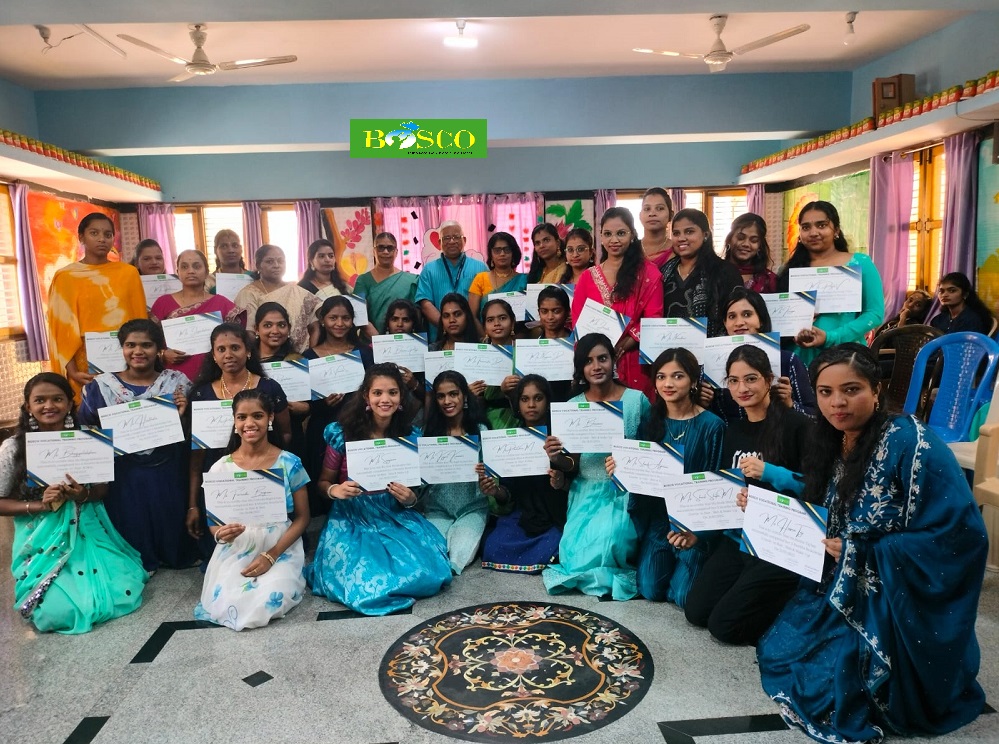 Ms. Sheeba Thomas, Director of BOSCO Vatsalya Bhavan, also congratulated the students and urged them to continue striving toward their goals. She inspired them to encourage other young women to seek similar support and to always express gratitude to their teachers and the organization. Some students shared their experiences, particularly highlighting the assistance they received from the Skill Training Unit. The programme concluded with the distribution of certificates, and forty trainees received their course completion certificates.