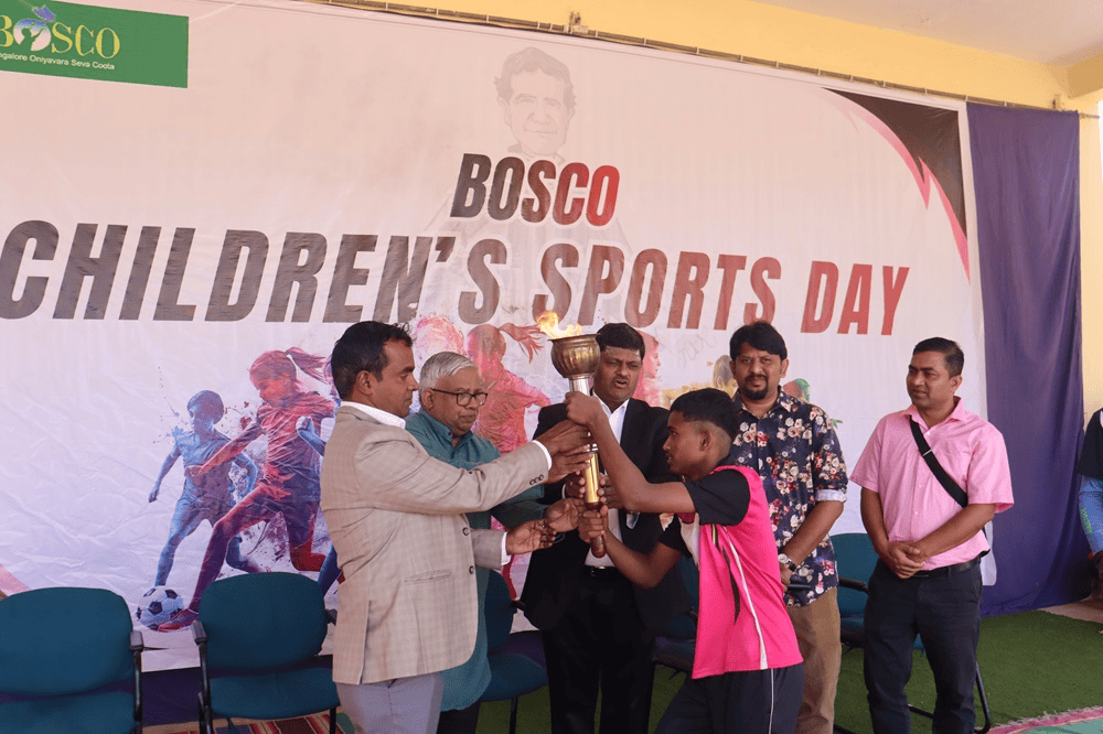 BOSCO Bengaluru organized Children’s Sports Day at St. Joseph’s High School, Chamarajpet, on January 18, 2026. Delivering the keynote address, Fr. Varghese Pallipuram, Executive Director, BOSCO Bengaluru, said, “Success or failure, keep smiling and move forward towards reaching the goals set forth.”  He exhorted the children to use such opportunities to hone their talents and skills, gain happiness and spread happiness to others around them. The Olympic Torch was lit and carried by the leaders representing the centres and areas with which BOSCO is associated.