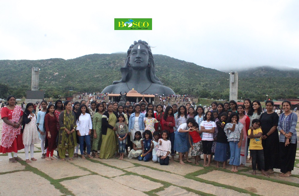 Later, the group proceeded to the Isha Foundation in Chikkaballapura, where the children had the opportunity to view the magnificent statue of Lord Shiva and offer their prayers. They spent some peaceful moments exploring the surroundings and experiencing the serene atmosphere before returning back happily. Fifty-six children and twelve staff had an outing.