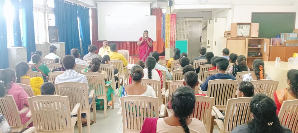 Mrs. Vinnarasi, Teacher and Motivator from BOSCO Yuvodaya, spoke on the roles and responsibilities of parents. She underlined that children need care, protection, and love from their parents, and that an adverse home environment can significantly impact a child’s behaviour and development. She encouraged parents to regularly monitor their children’s school progress, observe their behaviour, and prioritize education, reminding them that parents serve as role models for their children. Additionally, she emphasized the importance of obtaining Aadhaar cards, voter IDs, PAN cards, and ration cards to access various government welfare schemes and social entitlements.